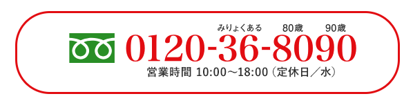 電話でのご相談:0120-36-8090(平日10:00〜18:00 定休日/水)